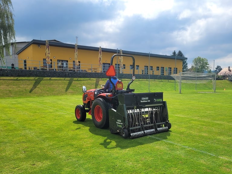 urovnání povrchu a rozhrnutí nerovností po aerifikaci
