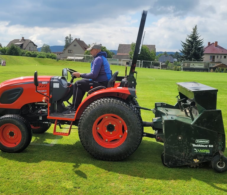 Dosévací stroje Turfco využívají patentované technologie WaveBladeTM. Rozteč WaveBlade nožů 3,81 cm v kombinaci s nezávislými plovoucími hlavami zaručují díky kopírování terénu homogenní dosev na celé ploše. WaveBlade technologie vytváří přesné, rovné čtvercové zářezy, které zajišťují optimální kontakt osiva s půdou s minimálním poškozením trávníku. Patentovaný výsevní systém dopravuje osivo přímo do drážky, čímž se snižuje výsevek a zvyšuje klíčivost a vzcházení. Tato technologie umožňuje plynulou změnu hloubky výsevu v závislosti na Vašich podmínkách. Plovoucí jednotky přesně kopírují povrch půdy. Nedochází k vynechání setí u prohlubní nebo naopak ke skalpování a poničení vyvýšenin nebo neoznačených postřikovačů. Plynulé nastavování hloubky záběru pro optimální setí v každých podmínkách, bez použití nářadí